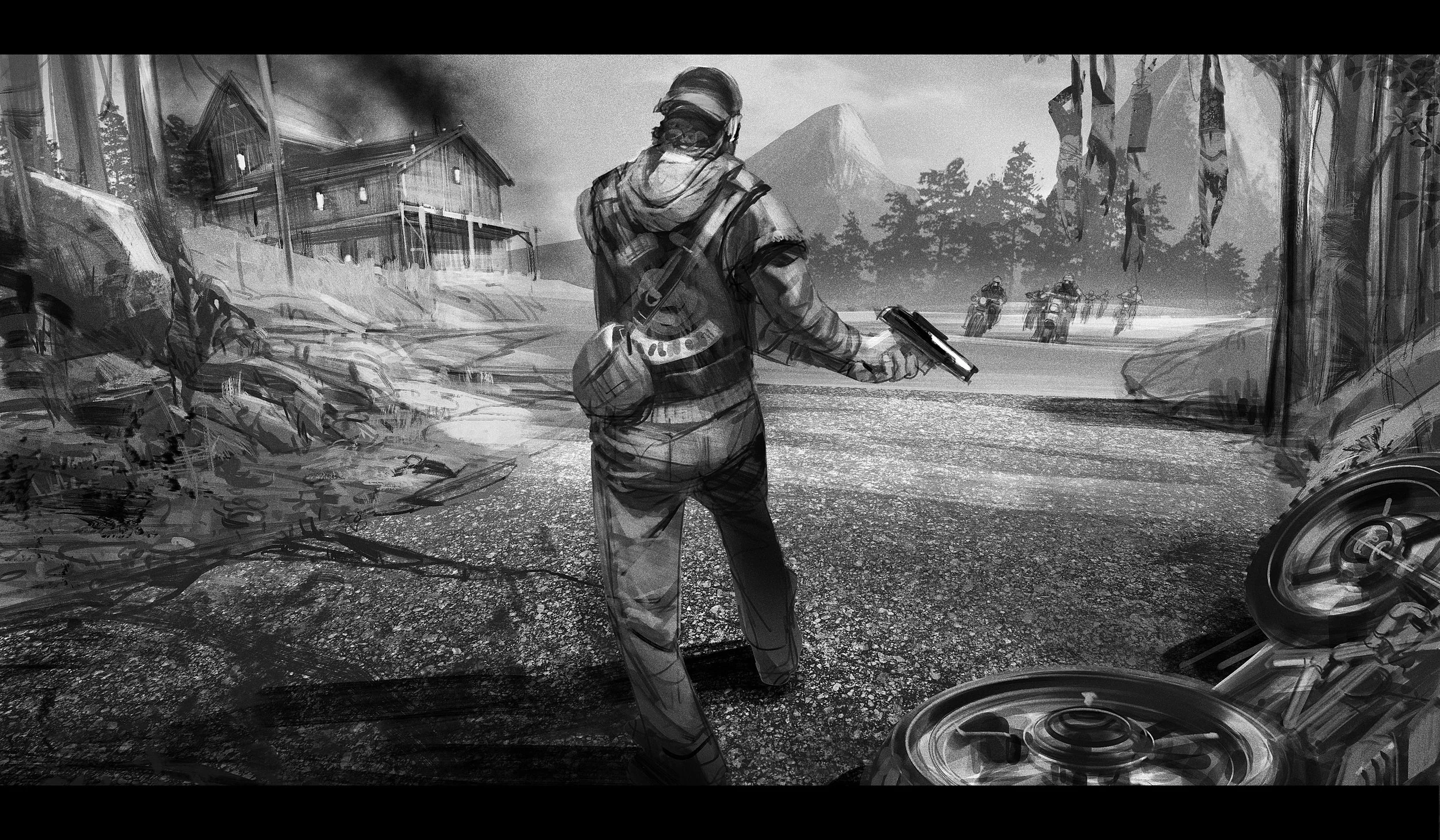 Storyboards and characters sketches for game cinematics